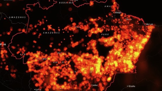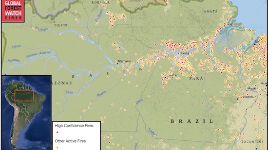 Satellite data from Global Forest Watch Fires show thousands of fires in the region