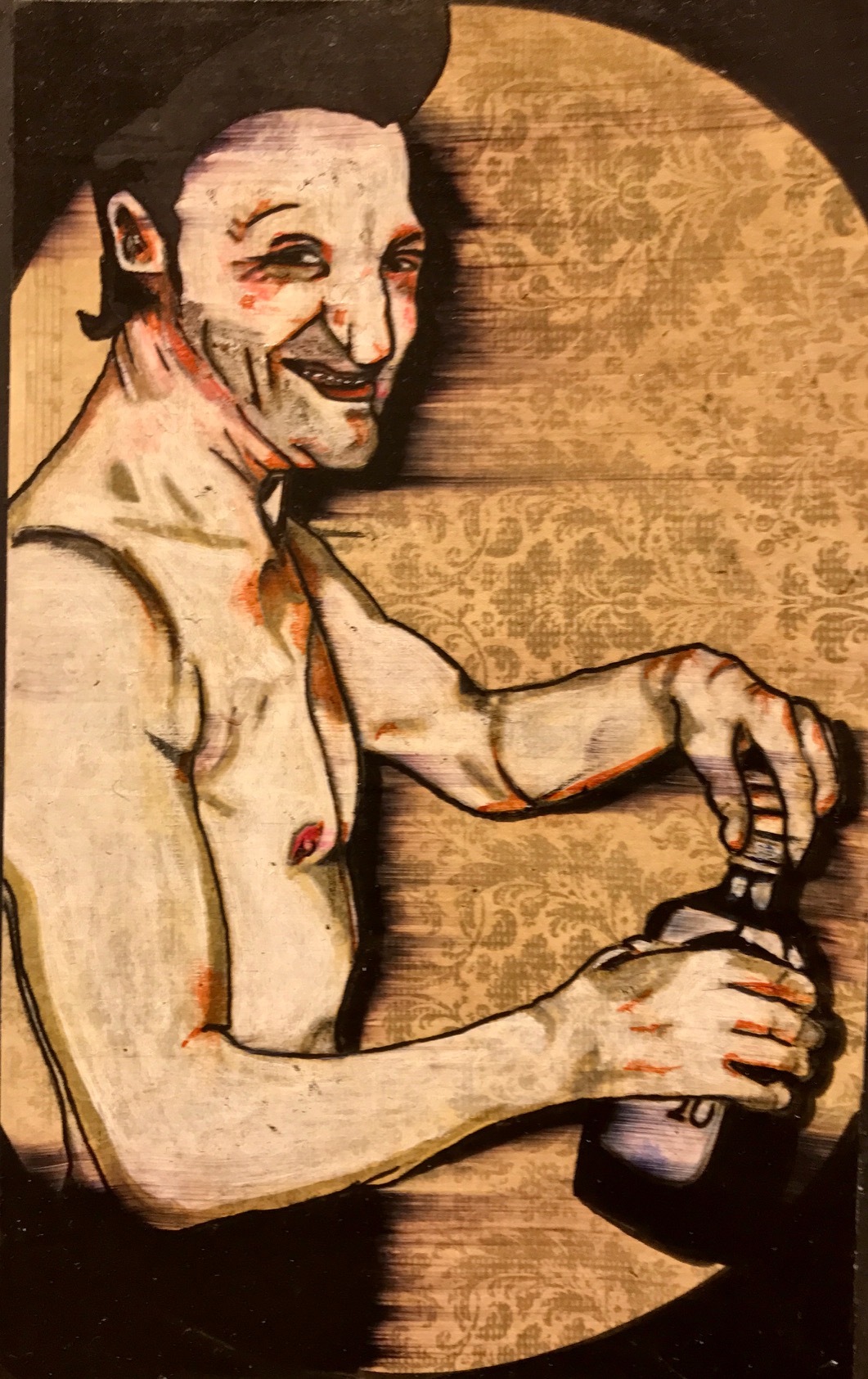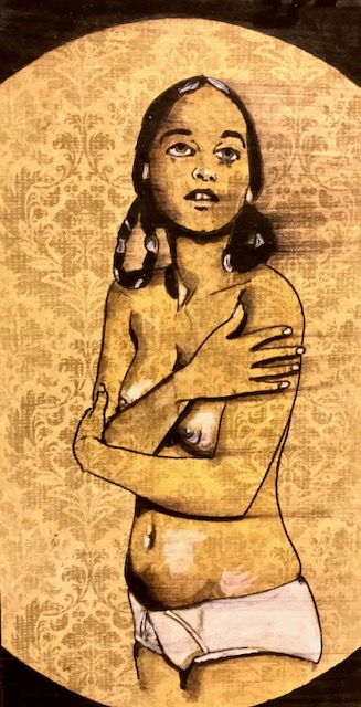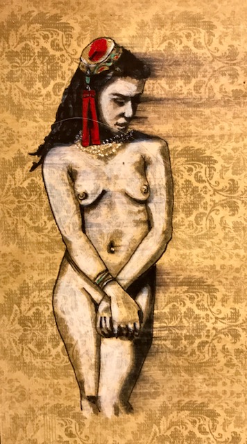Taken individually, the subjects of Anthony Hassett’s drawings each embody a facet of the human experience: tragedy, comedy, tragicomedy, indignity, absurdity, grace. They are fleeting moments of trial and tribulation caught, again, “behind the scenes”—on backlots, sometimes familiar, oft-times bizarre: baseball cards with a Shakespearean dimension. Taken as a whole, however, unfurled like Tibetan prayer flags or a roll of silver screen celluloid, Hassett’s albums depict the full arc of human pathos in epic proportion. The albums render Samsara itself, uncircled and laid bare for all to bear witness to that which simultaneously binds and unites us all. Viewers with lazy minds and faint hearts might easily dismiss some of the work as pornographic, yet this one-dimensional interpretation would fail to take into account the lineage of Indigenous Art from all over the world, including that of Tibet’s Bon and Buddhist traditions, with its “yabyum” copulating deities, for example, or India’s rich Kama Sutra tradition, which depict the full range of human sensuality—often for the purpose of spiritual transmission.