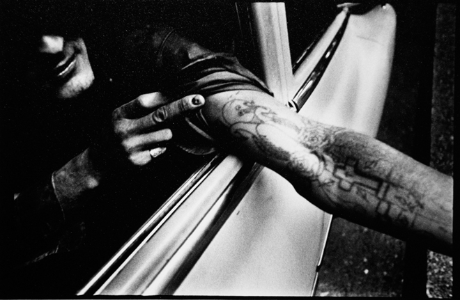 So I spent about a week, every day going there asking, “Please, please. I’m a photographer, blah blah.” One night, it was 7:30 in the evening, this guy, one of the guards there—they were all cops—he was smoking a cigarette. He looks at me and he throws the cigarette on the ground and he says, “Get the fuck in my car. Get inside of my car right now.” I said “Why?” “Get inside of my car right now!” So I went inside. I said Oh shit, I’m gonna get fucked up now.