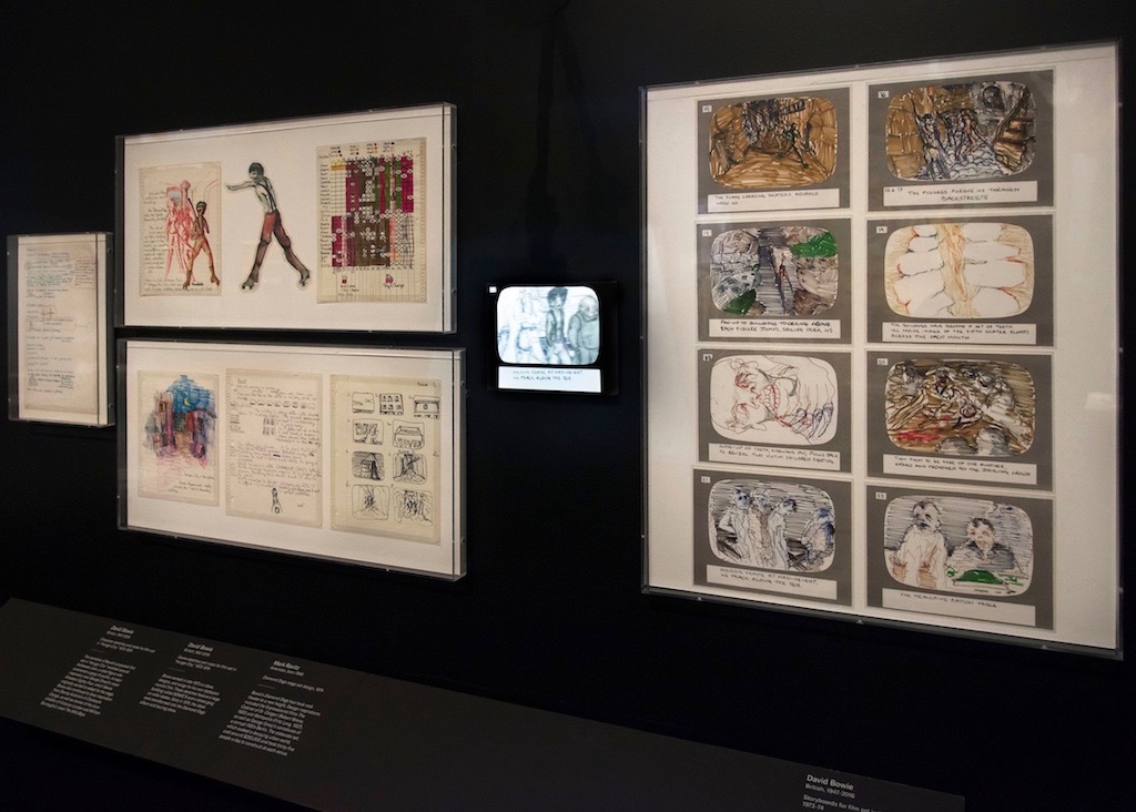A display of the artist’s hand written lyrics also offers an insight into the unearthed, excavated thoughts and private ruminations that built his material empire. The artist used a technique of cutting his phrases into lyric pieces, splicing to form coincidental amalgamations. This chance-driven technique brings the literary and poetic force in Bowie’s process to light. Conceptualized in the early nineteenth century with French poet Stephane Mallarme, through the Dadaist movement and later utilized in American poetry in the 1950s-1960s, the method was later co-opted by Bowie in his song-writing process. This practice opened his work to the boundless dimensions of language and form. And with this physical manipulation, the urgency to create, a compulsive need to see the new again and again can be seen in Bowie’s procedure as well.