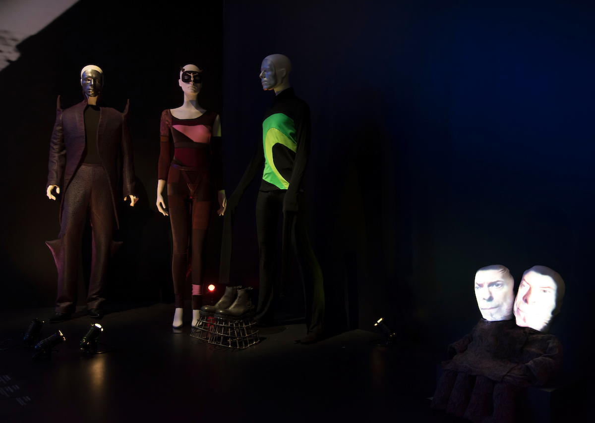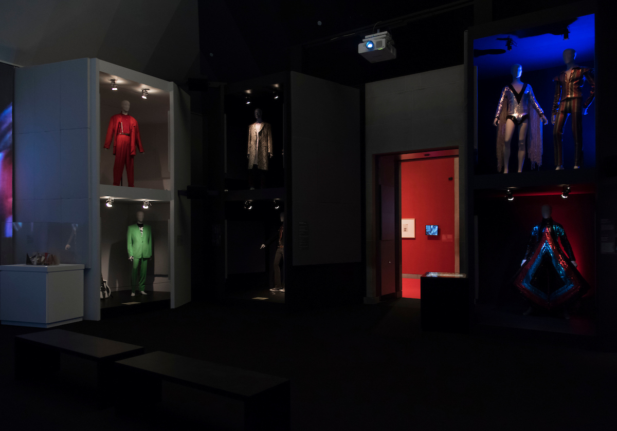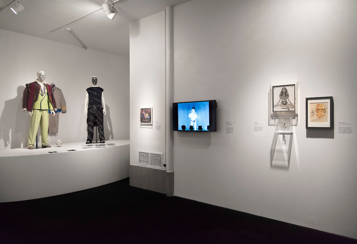 The exhibition also moves outside of the archive’s timeline, portraying an elaborate life in simultaneous segments, both on and offstage. Photographs of the artist as a London teenager, as David Robert Jones are set against the proliferating images of his later reconfigured characters. Large multiple-screen displays of past performances vacillate against surrounding photographs, writing, audio and dressed mannequins. Images reverberate against countless sounds and selves. Surging with bouts of light, sound and spectacle, these displays invoke the limitless creations amassed under Bowie’s direction. As sound and vision swell through each room, Bowie’s alternative portfolio spans through sets of costumes, video and audio all occurring together; the material resonates like an endless concert. This sensory experience, both revitalizing and exhausting, evokes the capacity of Bowie’s sound and sight.