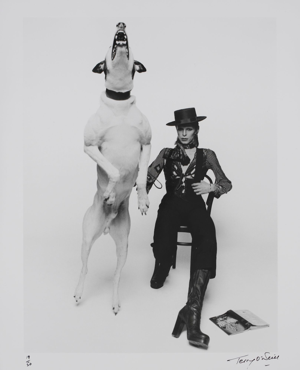 - Promotional photograph of David Bowie for Diamond Dogs, 1974. Photograph by Terry O’Neill. Image © Victoria and Albert Museum