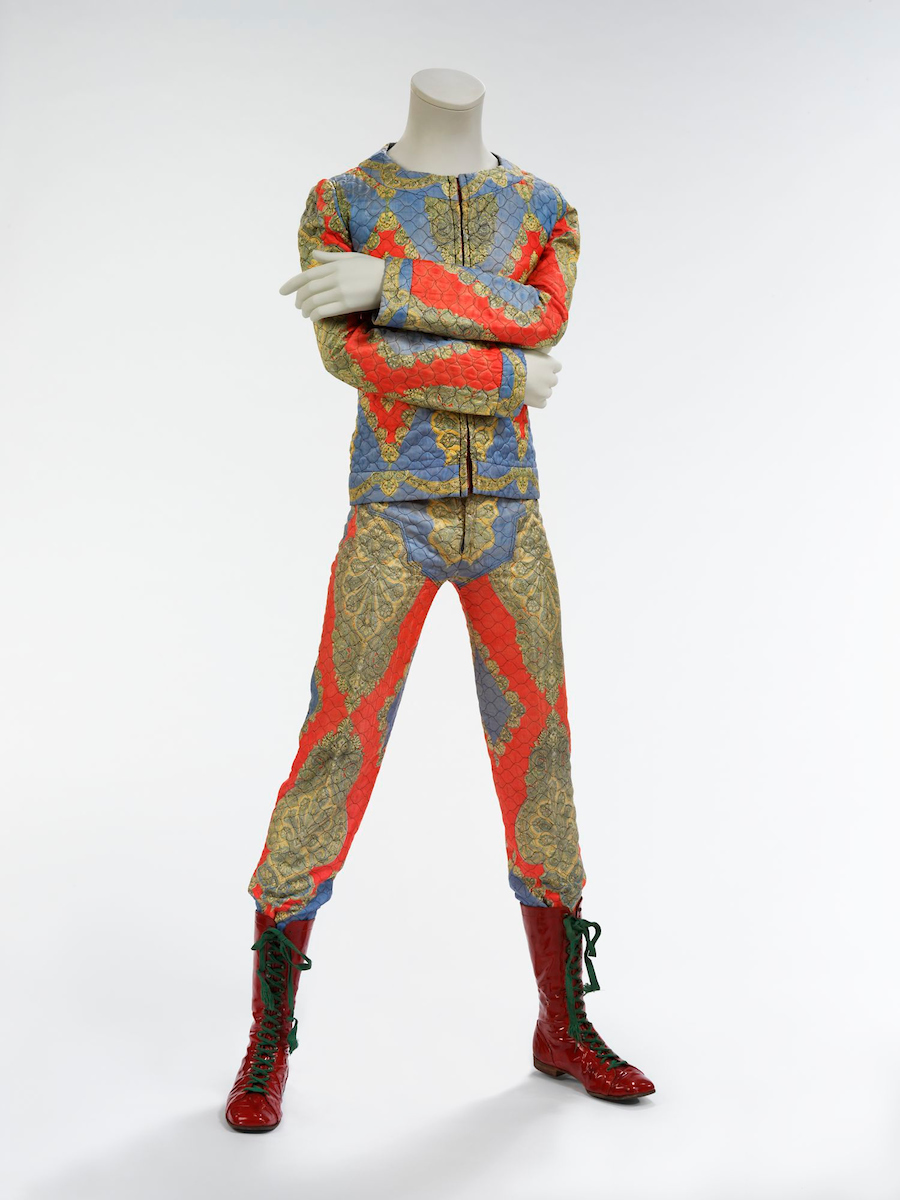 Quilted two-piece suit, 1972. Designed by Freddie Burretti for the Ziggy Stardust tour. Courtesy of The David Bowie Archive. Image © Victoria and Albert Museum