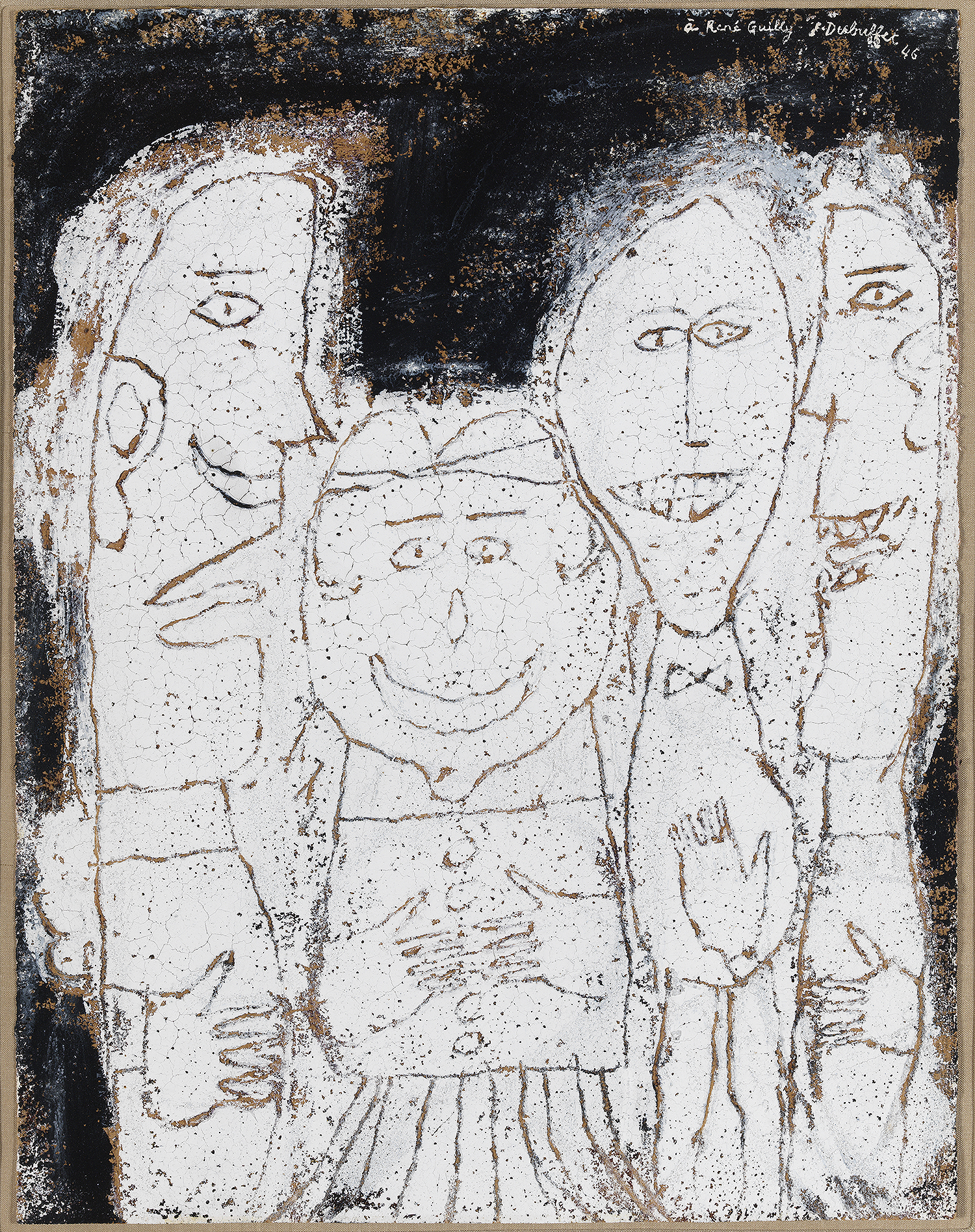 In a letter to his friend Gaston Chaissac, dated 30 June 1947, Dubuffet said: “I’m absolutely convinced that someone who changes instrument(s) and … rather than drawing with a pencil on paper draws with this finger on fogged glass or with a knifepoint on a lump of butter or with the heel of his shoe in the dust, will be regenerated and led to invent new forms and new means of expression and make all kinds of discoveries which he would never have made with his pencil and paper…” This extraordinary exhibit gives the prolific Dubuffet his due while highlighting his lifelong search for new techniques. The artist who coined the term “L’Art Brut” in 1945 to describe the kind of art he was inspired by continues to inspire, delight and surprise us.