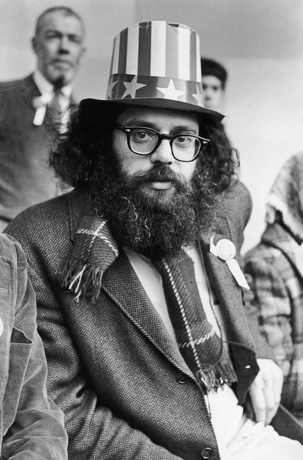 Allen Ginsberg on Central Park Bandstand, 5th Avenue Peace Demonstration to Stop the War in Vietnam, March 26, 1966. Copyright Fred W. McDarrah, Courtesy Steven Kasher Gallery, New York