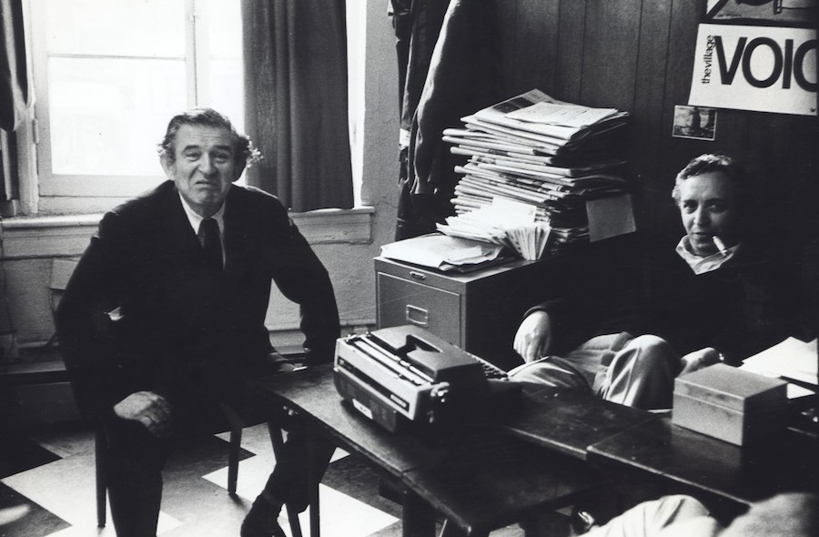 Editor Dan Wolf with author and fellow Village Voice co- founder Norman Mailer in the Voice’s offices, 61 Christopher Street, New York City, April 14, 1964. Copyright Fred W. McDarrah, Courtesy Steven Kasher Gallery, New York