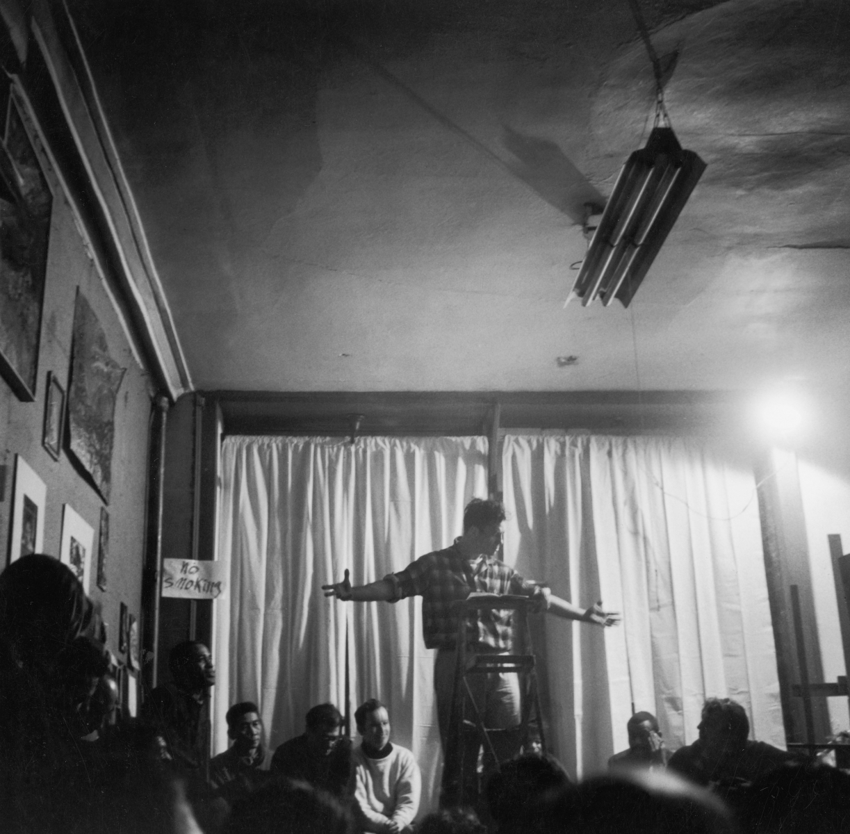Jack Kerouac reads poetry at the Artist’s Studio, 48 East Third Street, February 15, 1959 Vintage gelatin silver print, printed ca. 1959. Copyright Fred W. McDarrah, Courtesy Steven Kasher Gallery, New York