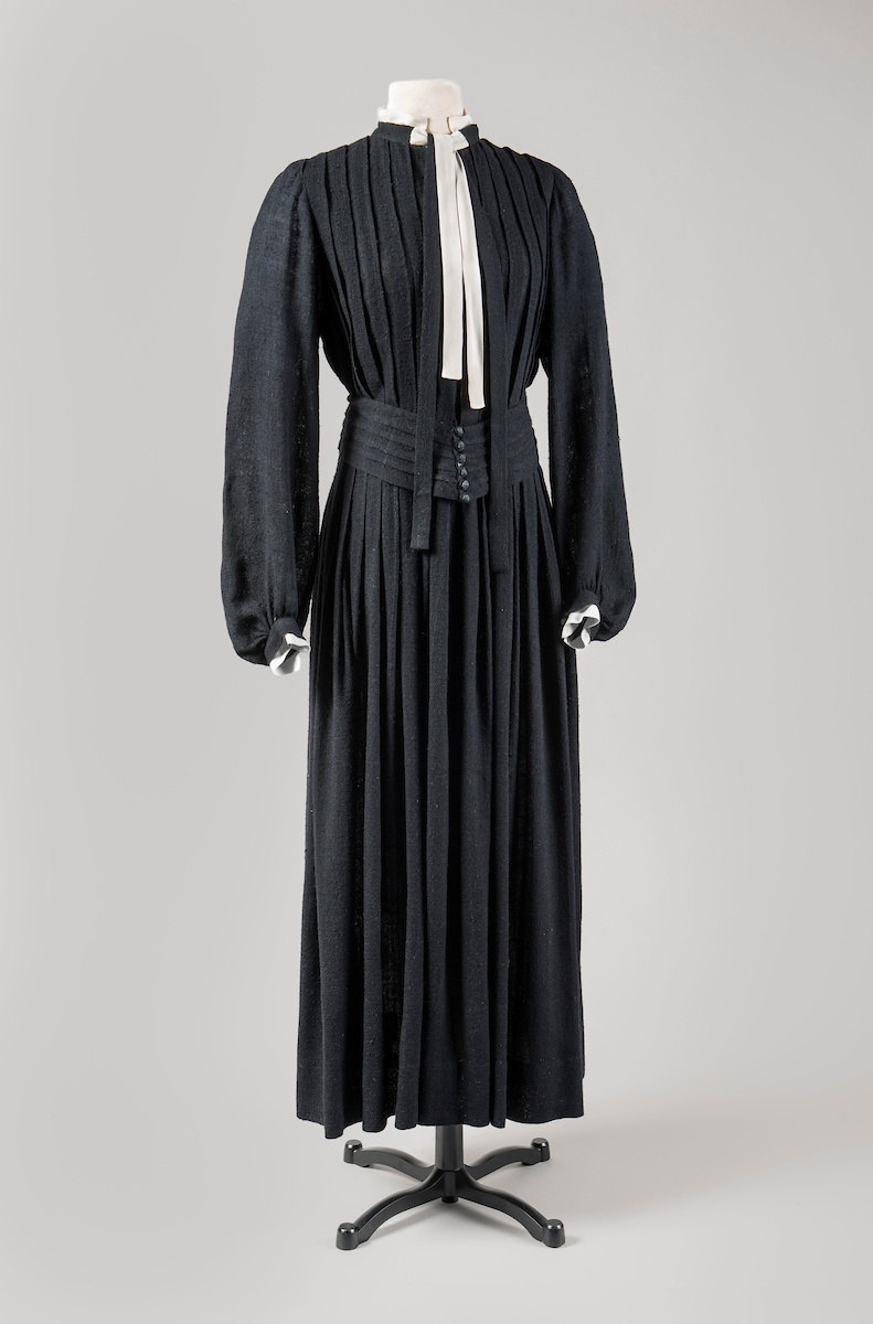 - Attributed to Georgia O’Keeffe. Dress with Matching Belt, circa 1930s. Black wool, crepe and white silk. Photo: © Gavin Ashworth