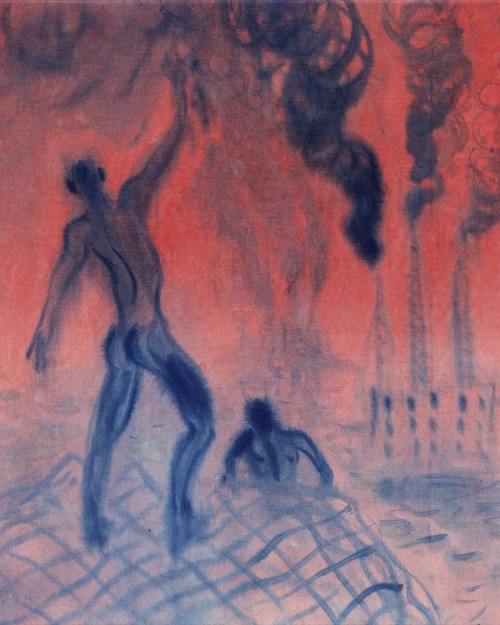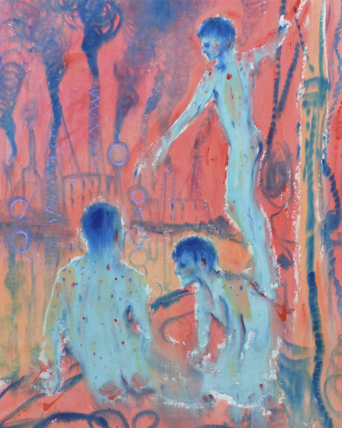 DUBRAVSKY: Figurative painting is always something totally historical! I like the periods in art history which are sort of a “dead end street.” When things were not changing formally too much, but it was just getting more and more manneristic, like Rococo for example or Mannerism, or lots of decadent movements, or some other kinds of art of the late 19th centuries. It feels like the artists sort of knew they are close to some big “revolution,” but those artists would just ignore it and they would keep making those strange “old fashioned” but extremely eye-catching paintings. Tuke represents something like this for me. There is a painting in the show called “bathers” where I appropriated Tuke’s composition of young boys hanging out on a boat, but I’ve painted the composition in contrast to disturbing colors, and placed factories with big smoking chimneys in the background instead of a romantic shore…