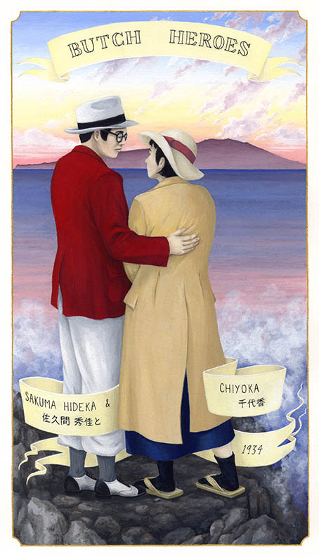 BRODELL: I knew early on that I wanted to put a book together once I had completed a number of paintings. I felt like it was a natural format to present the paintings with the text and all of my research sources, especially once the paintings went off into the world. I self published the first edition, Butch Heroes: Paintings by Ria Brodell, through Edition One Books in Berkeley, California. We made an edition of three hundred, all signed and numbered.