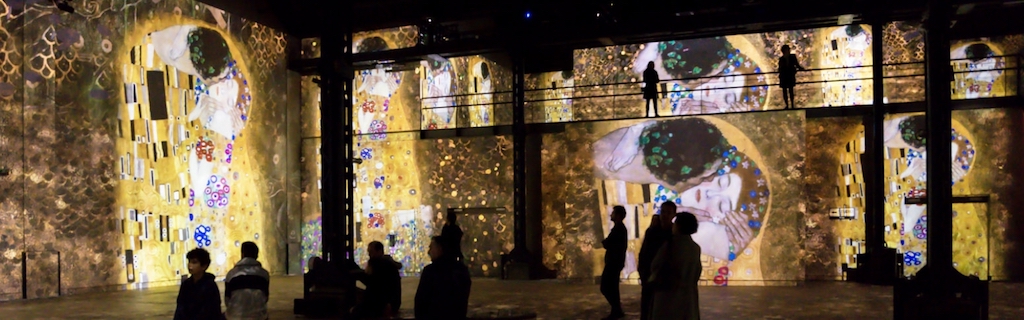 This frenzy of unrelated images might puzzle the viewer who’s come to see a Klimt exhibit. It is the branding piece for Culturespaces, an international company that manages and promotes art spaces, with a specialization in producing immersive experiences.