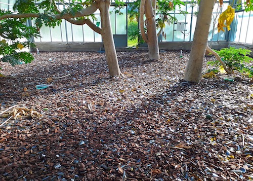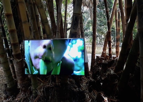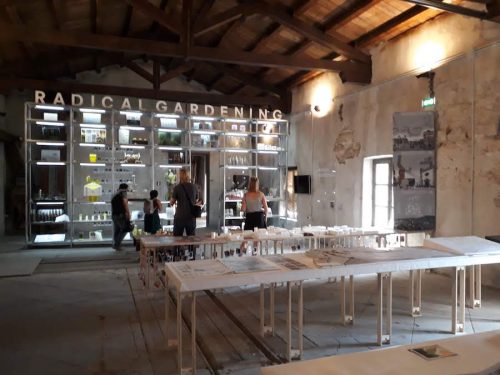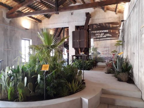 The Botanical Garden belongs to the more uplifting “Garden of Flows.” It would be worth a visit even if it weren’t for the Biennial, with its lush foliage, its lemons rolling at the feet of the visitors, its fountains, its ponds, its carefully aligned terra cotta pots. Some of the exhibits belong to the familiar realm of contemporary material: gorgeous photos of plant imprints in coal, Drowned World, by Michael Wang; a video, Pteridophilia by Zhen Bo, playing on a screen set in a bamboo groove, shows young men making love to ferns; an installation by Lungiswa Gqunta, Lituation, of a plot of the garden defiled by dirty broken bottles and glass shards, sounds a desolate note of contamination and danger, whether the victims are humans, animals or the environment. Others are more unusual, such as Leone Contini’s ‘intervention’ Foreign Farmers, which documents and collects the seeds of plants introduced by migrants, as they might adapt better than native species to our changing climate. Two installations, if they can be called that, in Michael Wang’s Drowned World, hint at the ephemerality of our human race: a foaming, acid-green water in a fountain reproducing at the same time the conditions of chemical wasteland and those of the sea at the emergence of life. Species, the same that produced fossil fuels billions of year ago, have been planted in old gas tanks to accelerate their disintegration. Should we go on with our fossil fuel habit, the planet might well go back to hosting only these primitive organisms. The NGO sponsoring this work claims to be “philanthropic” by providing clean water to communities. This terminology, when Manifesta works so hard at promoting the concept of a “Planetary Garden” in the Anthropocene, sounds shockingly outdated. Michael Wang and Leone Contini’s works, like many of the installations around the city, merge seamlessly with the locations, some to stay, as Manifesta has been active in several Palermo locations for a whole year.