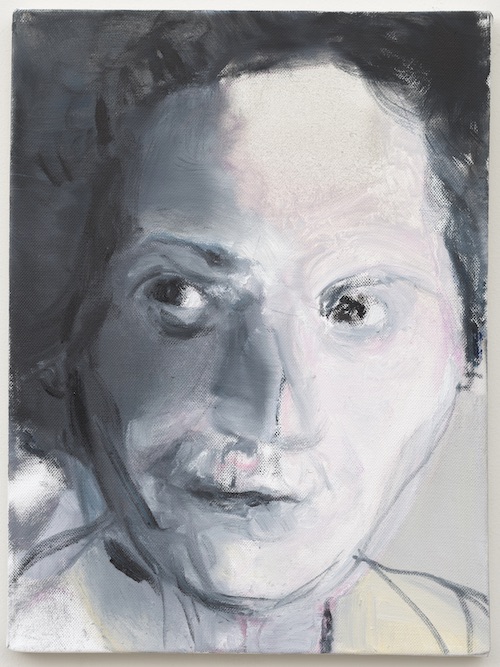The portraits have the Dumas touch, painted in close up with a short stretch of neck at the most, somewhat distorted. In these ingratiating works, she lets herself be inspired by each particular creator: Rimbaud is delightfully elegant, Francis Bacon darkly introspective. Oscar Wilde is sensuous and dandyish. Organized in a grid of two lines, each piece retains its individuality, while they form together a personal gallery of modern martyrs. The room with three Pasolini themed works has a clear narrative. A closeup of Anna Magnani screaming with anguish in Mamma Roma expresses what Pasolini’s mother, represented in the adjoining painting, must have felt upon learning of her son’s death, what we should all feel when we consider Pasolini’s murder. Pasolini’s portrait belongs to the Great Men series, depicting the homosexual creator with deep respect and sympathy.