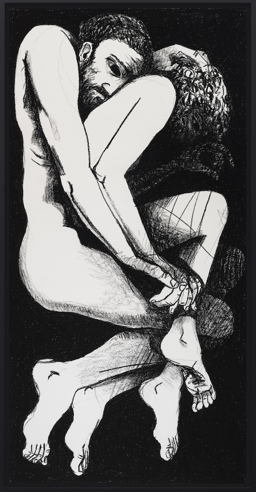 Intimacy is also the focus of LA-based Marty Schnapf; his Loves and Lovers is his first solo show at the gallery. Working in black and white, using charcoal, he has created large-scale, intertwined figures and single figures that are graceful, filled with movement, and which, as with Ajerman’s work, offer the viewer a rich insight into a personal world.