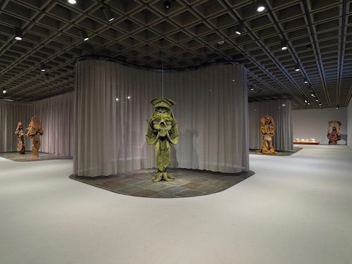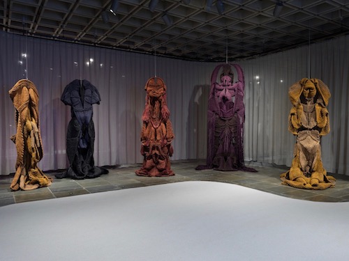 Still, if all else fails, she can create them. They cannot make her a political artist or an icon of cultural diversity, but she is quite willing to sacrifice identity politics to her magic act. Terrifying or not, what stands out is a highly personal approach and a growing mastery of materials. Fabric comes down from wall, at first suspended from the ceiling, somehow rises on its own, broadens and deepens in space, and finds ever richer dyes before giving way. Even at just fifty-seven works, much seems more charming than phenomenal. Taken as just the final room or a single installation, it can briefly regain its theater, its mysteries, and its enchantment.