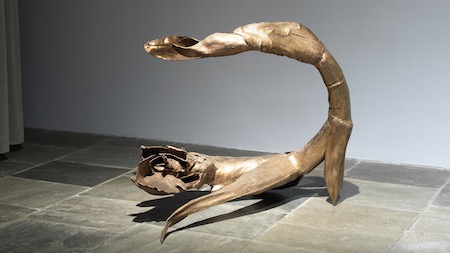 Did she take them up out of necessity or ideology? As uncoiling and separating rope became onerous, she tried ceramics — and as kilns and glazing became less available, she turned to wax on its way to cast bronze. Her imagery is no easier to pin down, not even with a text-laden handout. She named one work, from 1982, after a deity of terror, and one bronze, segmented like vertebrae, recalls Woman with Her Throat Cut, by Alberto Giacometti. Still, I mistook a squirrel’s tail in her very earliest work for a sorcerer’s cap and her contribution to the 2015 edition of “Greater New York” at MoMA PS1 for an empty suit. What you see and feel are up to you.