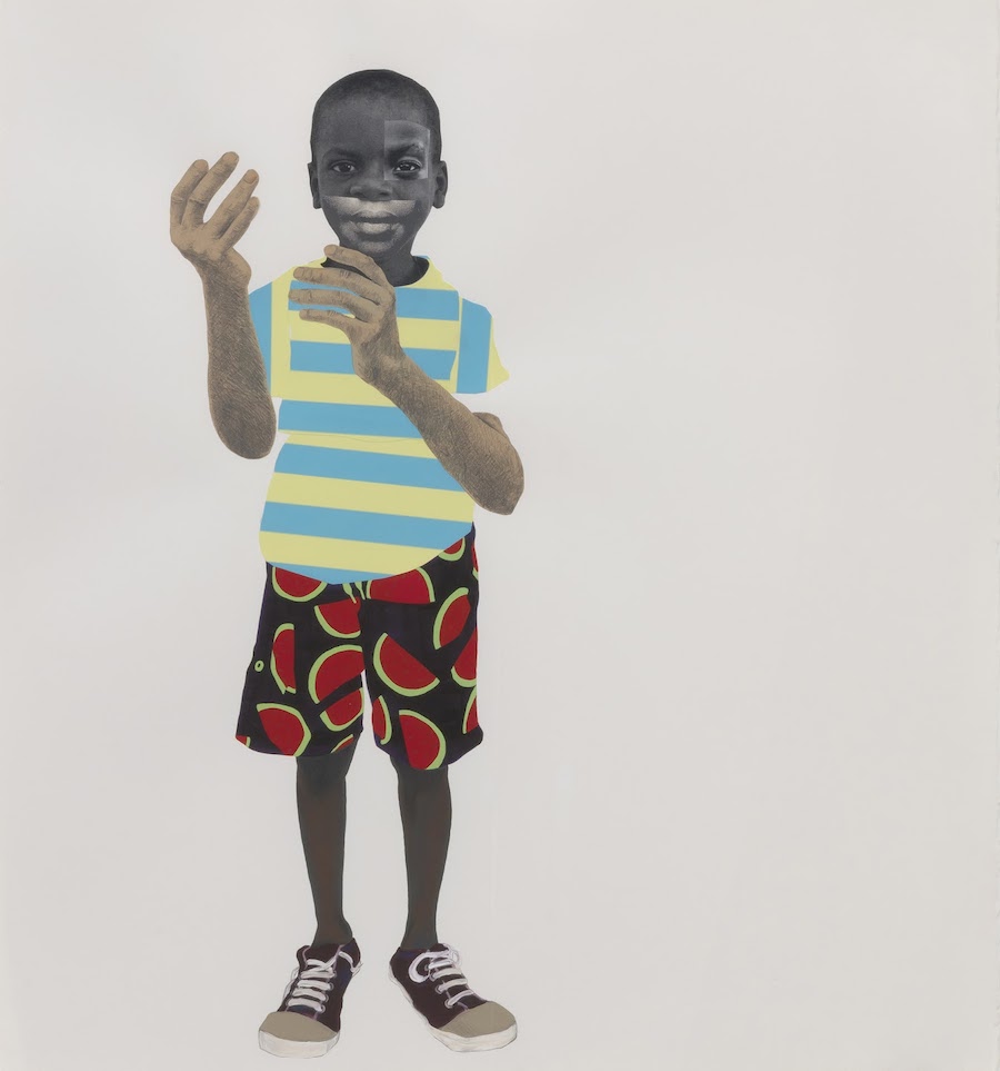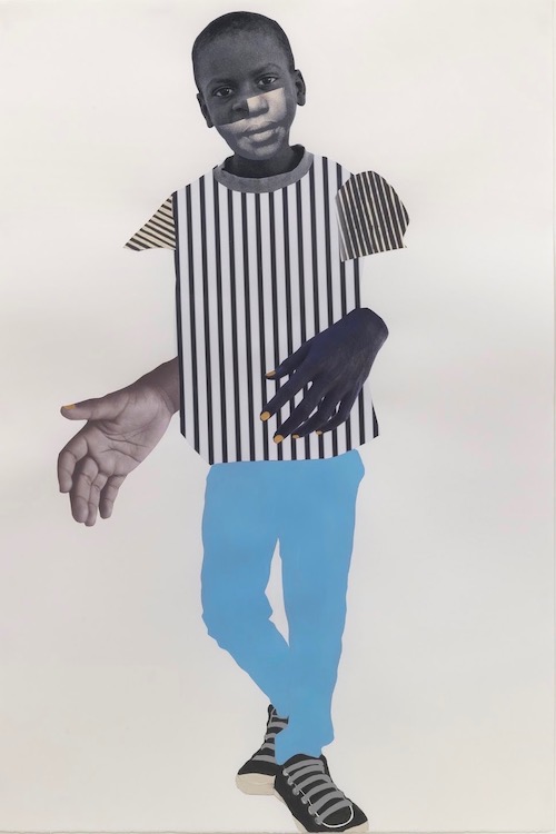 Roberts uses mixed media collage to create a new narrative on the fragility of Black masculinity. Fragility is not usually associated with masculinity but Roberts shows how Black boys are constantly in danger of being relegated to a pre-criminal status — without even doing anything wrong. Over the last three years Roberts has changed the face of Black girlhood in collages that associated Black femininity with beauty and power. Although she is a painter at heart, she became interested in collage as a medium for exploring the duality in blackness and changing racial stereotypes.
