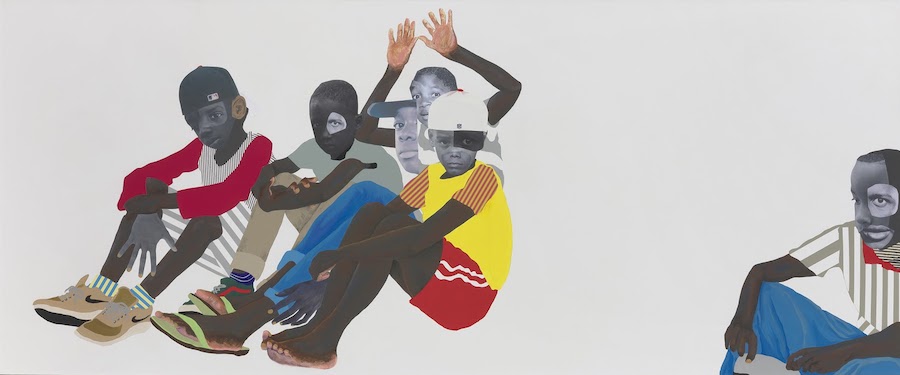 Deborah Roberts’ impassioned exhibition memorializes Black boys who lost their lives from the social injustices of false accusations for murders they did not commit. This solemn exhibition is predicated on African American literature and takes its title from James Baldwin’s non fiction essay, “Many Thousands Gone” (Notes of a Native Son, 1955).