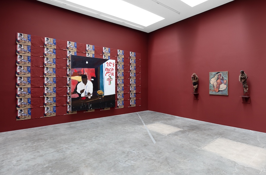 Installation view of New Images of Man, curated by Alison M. Gingeras, Blum & Poe, Los Angeles, 2020. Courtesy of the artists or Estates and Blum & Poe, Los Angeles/New York/Tokyo. Photo: Makenzie Goodman