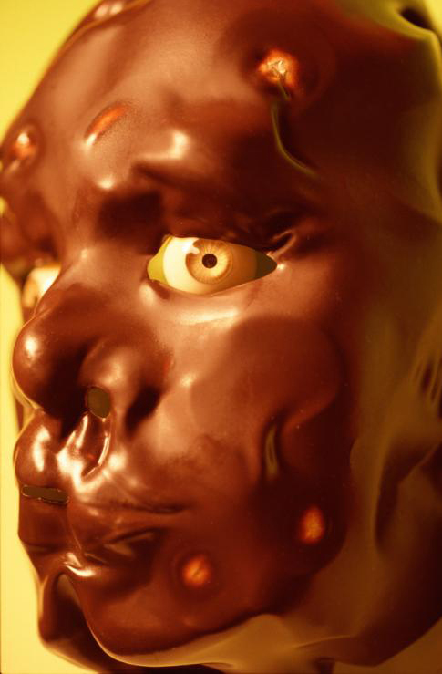 In one photograph, Untitled #315, Sherman is drenched in a sickly, shiny, slimy green, and surrounded by an alarming jumble of body parts. Is this creature being born or being shat out? Hard to say. Either way, it’s hard to hold a prolonging gaze. So you look instead at Untitled #324 (59 3/3 x 39”) only to find a freakish face dripping in, one can only hope, chocolate. Sherman, in spite of her myriad personas, is characteristically present in her work. Not here; not in these two disturbing images, where all trace of the artist is hauntingly and unequivocally erased.