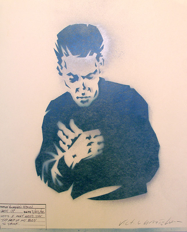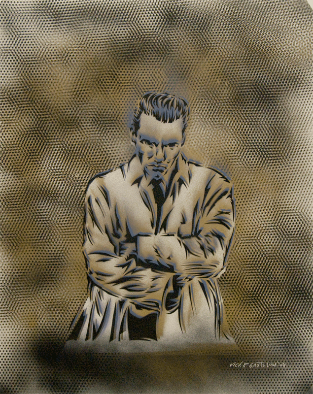Don’t call Victor Gastelum a stencil artist. Yes he wields an X-Acto blade like the Master of the Flying Guillotine, but long before Bansky was spraying 2-D cliches onto London walls, Victor was creating images that resonated like stills from an unknown film noir. It’s hard to remember now that there was a time when low riders and Mexican wrestlers were not in rap videos and beer commercials, but it was during those late 80’s and 90’s that Victor took the stuff of his childhood visual culture and created images that contain both literal and figurative depth. We sat in his studio in Long Beach and talked about his journey from making Punk flyers to working at SST Records and navigating the art world like Mr. Magoo.