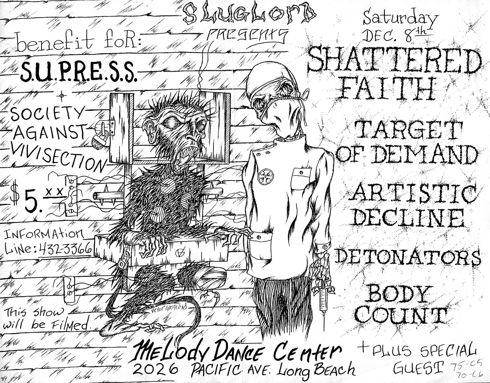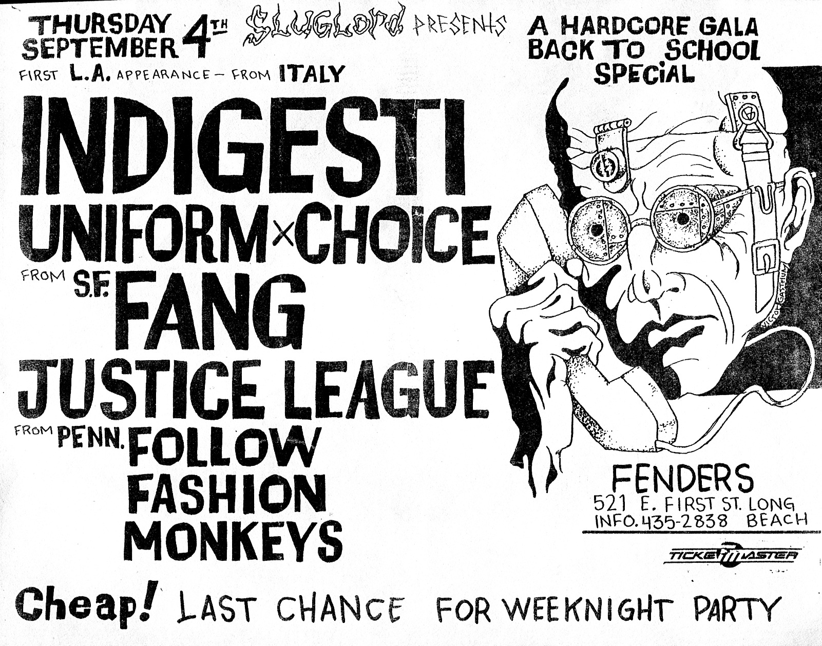 I was working in a warehouse and around that time I started doing punk rock fliers around ’84, ’85. I didn’t think that would be a job. I was doing it because that’s the way I was participating with Punk Rock. I would get into shows for free and I was good at it and at the time you’re young you just do things quickly, overnight. That’s how I made those flyers, mostly in one night. You’ve got your vision. It comes easy.