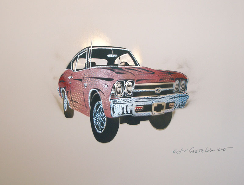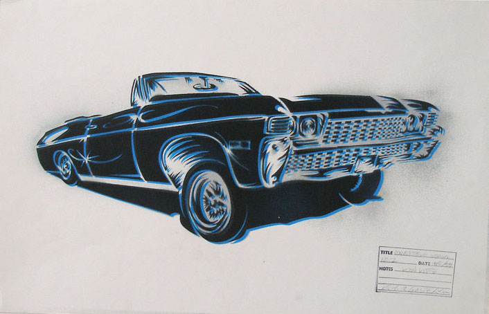 GASTELUM: The first thing I remember were cars. My dad always had a lot of cars. In the 70’s it was really cheap to buy cars. You could buy a car for $50, $75. Good American cars with V-8 engines, perfectly running. And there were low-rider cars in the neighborhood too. Probably the first car that really stood out to me was my dad’s ’59 Impala. I was probably 3 or something. I think the car was originally white and he painted it candy apple red.
