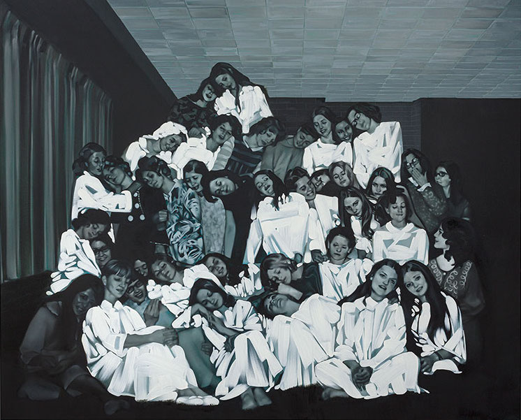 It’s obvious that Rebecca Campbell, whose solo show Infinite Density, Infinite Light, is currently on view at LA Louver, loves fierce and hard, and if nothing else, her most recent exhibition of paintings at LA Louver attests to the pain and exquisite beauty of human love in all its infinite variations. Most profoundly, Campbell’s paintings investigate the love between a parent and a child, yet that is not as simple as it sounds. These paintings are completely devoid of sentimentality and nostalgia, which is why they are so effective and affecting. It is as though Campbell figured out a way to synthesize the huge and often overwhelming emotion that is love into a pure and verifiable visual language whereby we as viewers understand that what we are witnessing in these paintings is the precise moment when the artist has recognized her own ability to love deeply, freely and without hindrance. Yes, these are images of her son, on the cusp of manhood, laid out, strangely Christ-like floating on the surface of the water in the painting entitled Still Waters (2020), quietly waiting for his young life to begin, but these images are also visual testaments to the passage of time, and the complex and sometimes difficult familial relationships that inform who we are and how we move through our lives. These paintings are literally about Campbell’s life and family, yet they also contain the joys, sufferings and the all-too-human vicissitudes that comprise a life, any life.