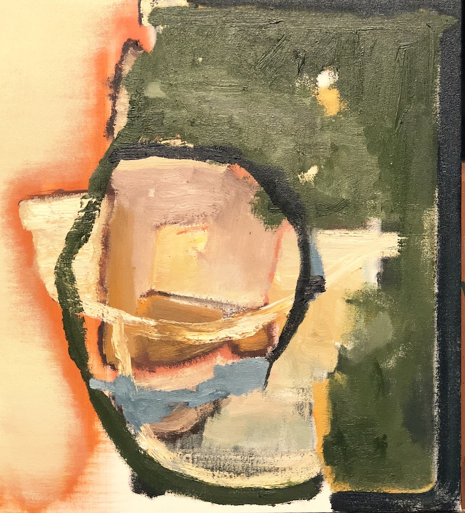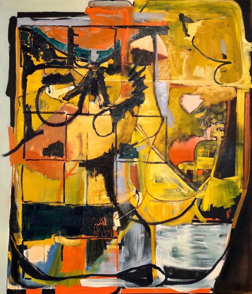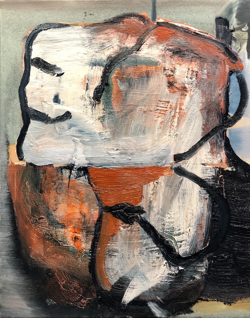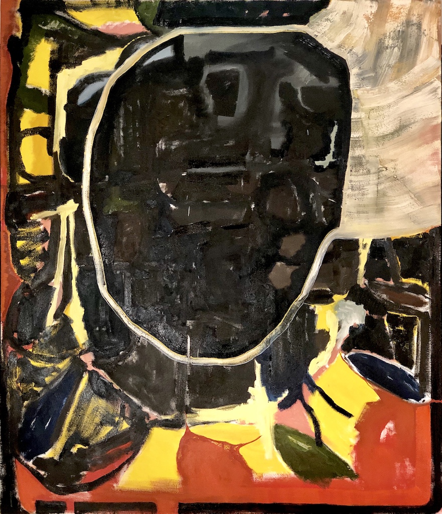 In Untitled, an impressive work dominated by the color orange, Gunderman suggests the symbolism of 19th and 20th Century French landscape painting, specifically Redon’s famous work The Cyclops, where the central eye dominates the image, and could be viewed as a controlling and independent being, a symbol of the human soul and the mysterious unknown world that is our consciousness. In Gunderman’s painting, the eye is strangely averted as though preoccupied by some distant reflection.