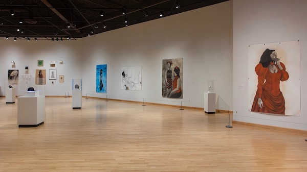 In Ascension (2017), a lone female figure is depicted in a fitted skirt and red shirt dotted with a UFO print. She stands astutely and strongly, looking upward. As the wall label says “Pruitt infuses his figures with a sense of divinity and empowerment.” Indeed. They are imbued, invigorated, and present as if sharing the space and air with us.