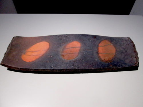 Hiroyuki Wakimoto (b. 1952), “Long Platter with ‘Botamochi’ Design,” Bizen ware, Okayama, Chūgoku.