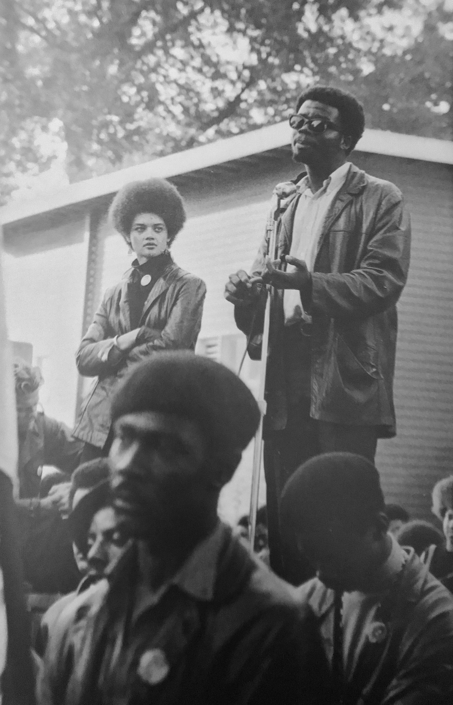 Stephen Shames, Kathleen Cleaver and George Murray, the Black Panther Party’s Minister of Education, at a Free Huey rally, 1968