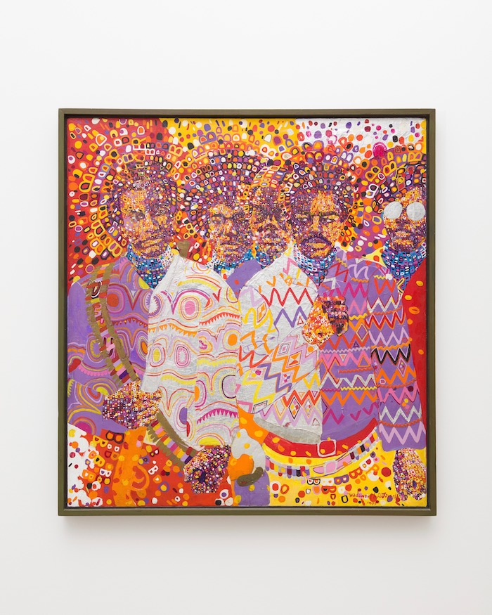 Modern abstractions, portraiture, and a room devoted to Betye Saar fill the last galleries of Soul of a Nation. With the exception of Martin Puryear’s sculpture that stands guard in the lobby of the Broad (but is easily overlooked), the purely abstract art is the weakest link in the show. Without the context of meaning that substantiates most of the other work, the large canvases seem untethered, particularly as single representations by each artist. The portraits, however, fare much better. The paintings by Barkley Hendricks from the mid-seventies are knockouts, finding the sweet spot between abstraction and figuration. What’s Going On is a stunning assembly of four elegantly attired white clad figures flanking a naked woman and set against a stark white background. Hendrix paints the figures as both formal and serene, somewhat Egyptian in their flat and simplified shapes.