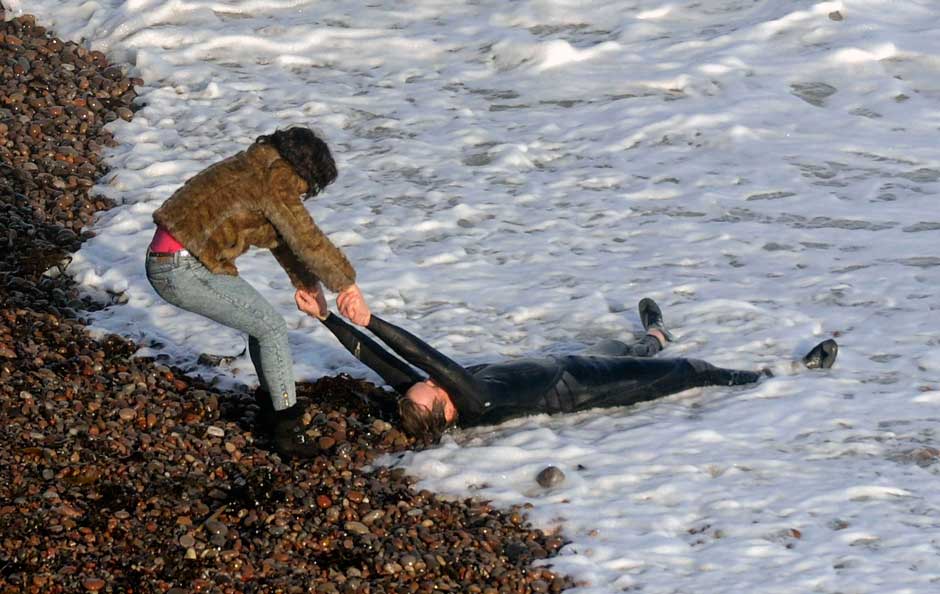 At any given moment we might be watching a fantastic tale dressed up in documentary trappings or a mass of documentary footage held together by the wisp of a fantasy. The fantastic element resides essentially in the person of Scarlett Johansson, who while often naked is at the same time entirely concealed: a paradox that unravels itself in the most literal way in the film’s final images. This watcher, who is seen only as the character she impersonates, remains apparently, in her moments of solitariness, entirely without feeling. She is an archetype, but an archetype arrived at by a mimetic creature able to construct herself into a lure—at least until, having perhaps outstayed her visit, she evidently becomes contaminated by empathy. A series of disjoined episodes—a drowning at an inlet in which one person dies trying to save another, the encounter with the disfigured man, the experience of being helped to her feet by strangers when she trips on the street, the evidently brief experience of sexual tenderness—disturb her balance and functioning and she attempts to escape from her assigned task.