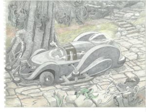 HALL: I love anything. I like to do figure work. I can change over into just about anything. You can get in a rut over that sort of thing. I’ve done plant environments. I drew a whole a bunch of them, twenty or thirty of them and then I’d go back to the cars. Right now I’m still on cars. You get on kind of a rampage. I like to do a lot of that and then you get tired of that and you go onto another form.
